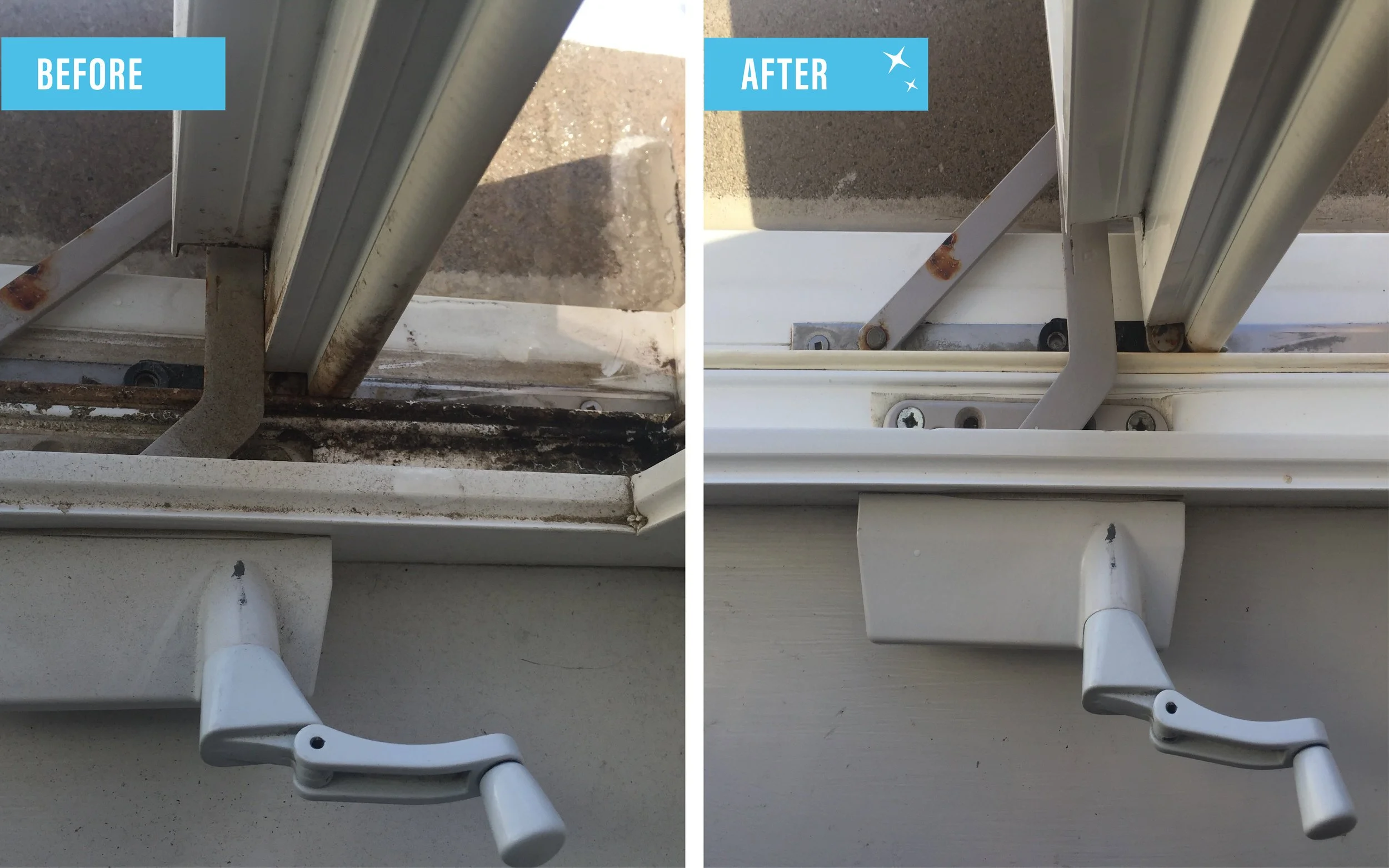 Any service that specifies cleaning tracks, includes sliding or cranking open all non-fixed windows and cleaning the opening mechanism (as shown on the photo to the left)